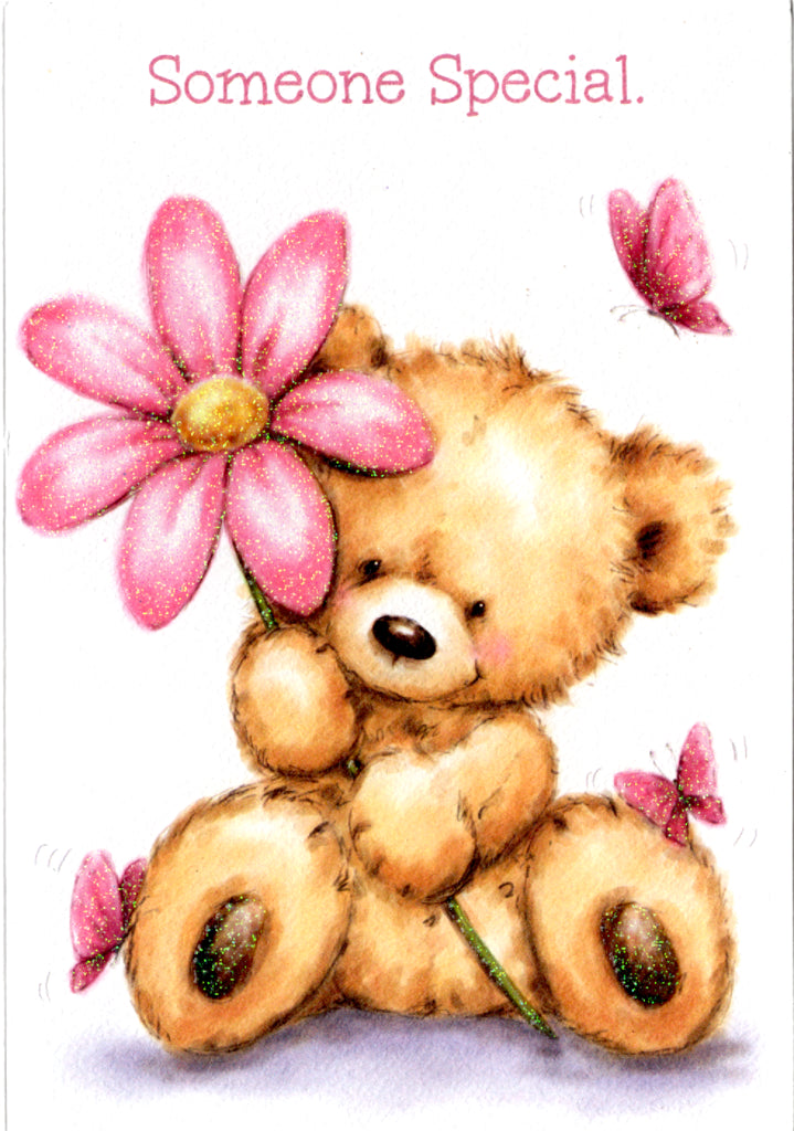 Bear with flower Birthday card Retail $2.99. Inside: Hope your day is as special as you are. Happy Birthday. | 6079 | 255336