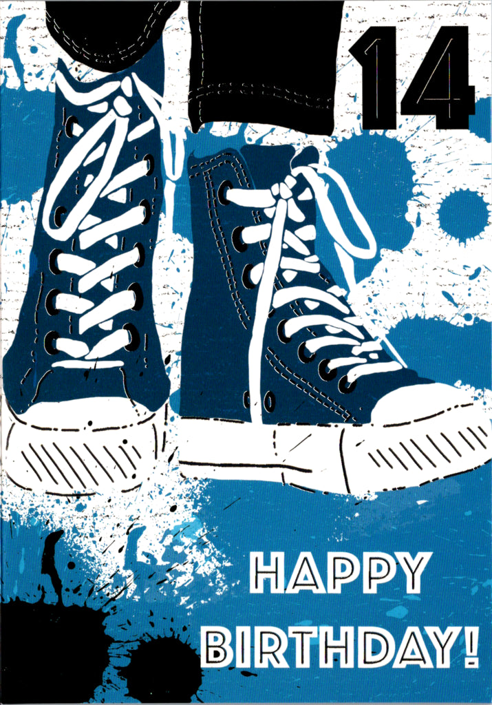 Blue sneakers- 14th age boy birthday card. Retail $2.99. Inside: Have a great 14th Birthday! | 7658 | 256158