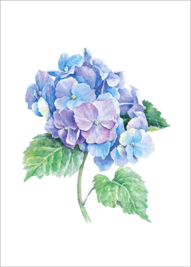 Carols Rose Garden Blue Hydrangea Flower Stem Watercolor Box of 10 Note Cards 4x5 Blue Hydrangea | 1838-4x5 | 260709