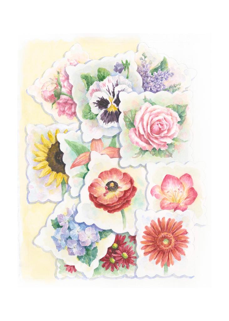 Carols Rose Garden Flower Stamp Collage Watercolor Box of 10 Note Cards 4x5 H-MFL008 | 1811-4x5 | 260989