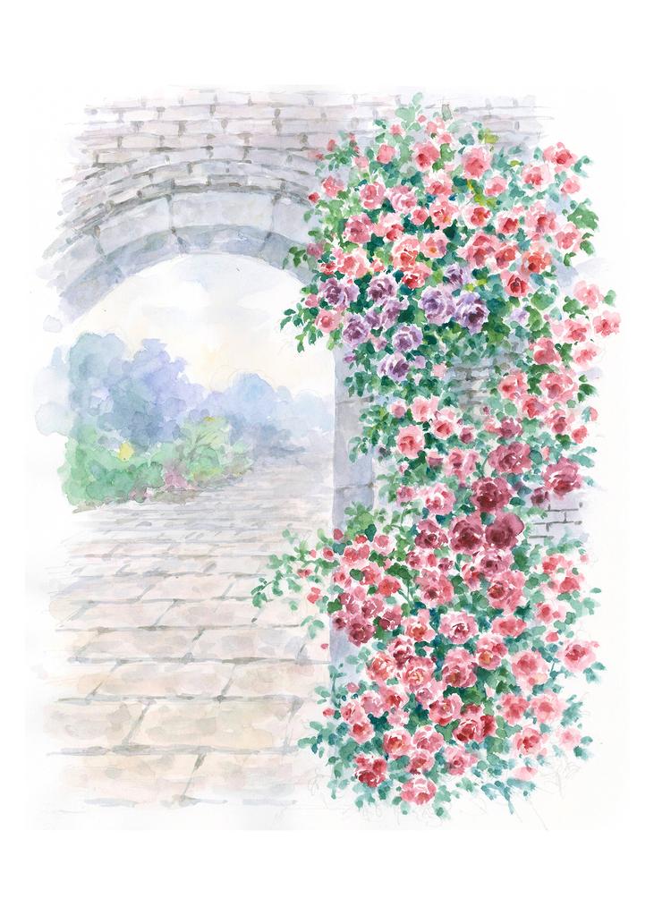 Carols Rose Garden Flower Trellis Cobblestone Arch Watercolor Box of 10 Note Cards 4x5 H-GAR021 | 1796-4x5 | 260990