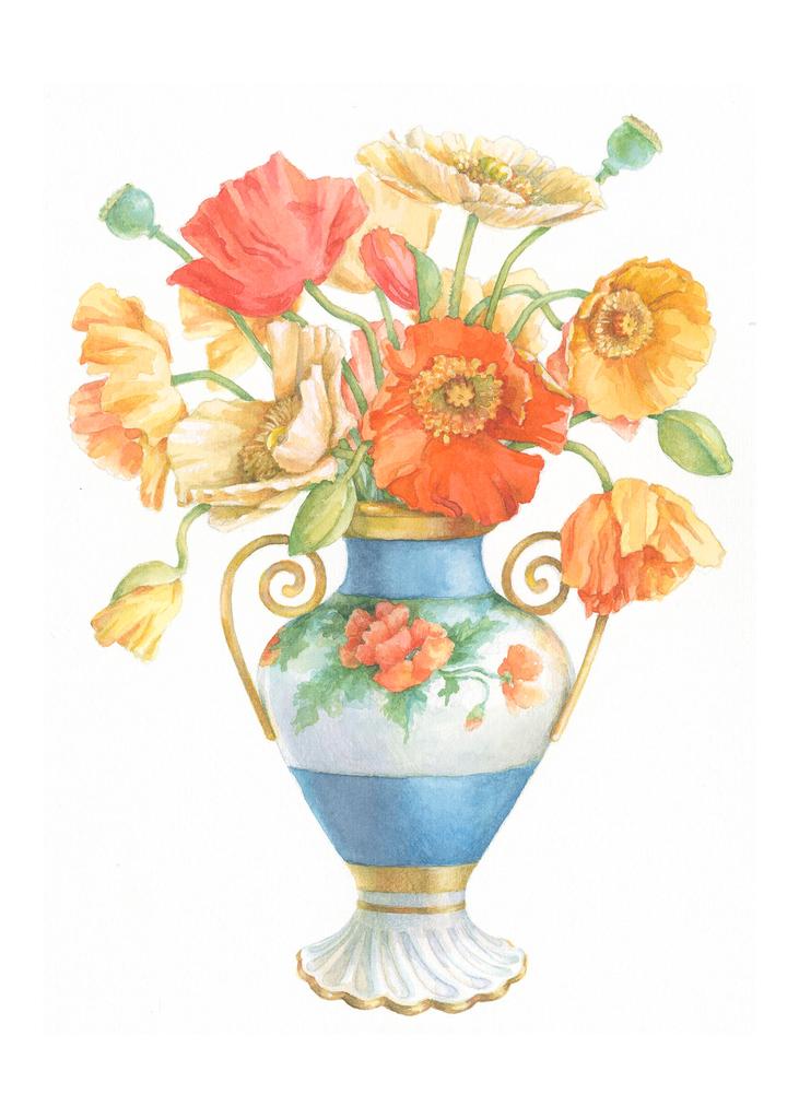 Carols Rose Garden Orange Yellow Poppy Flower Vase Watercolor Box of 10 Note Cards 4x5 H-POP003 | 1825-4x5 | 261040