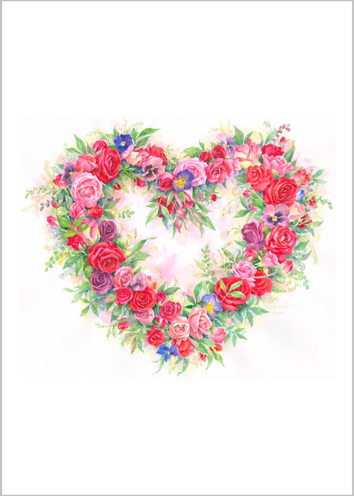 Carols Rose Garden Rose Heart Flower Valentine Love Watercolor Box of 10 Note Cards 4x5 H-ROS357 | 1837-4x5 | 261065