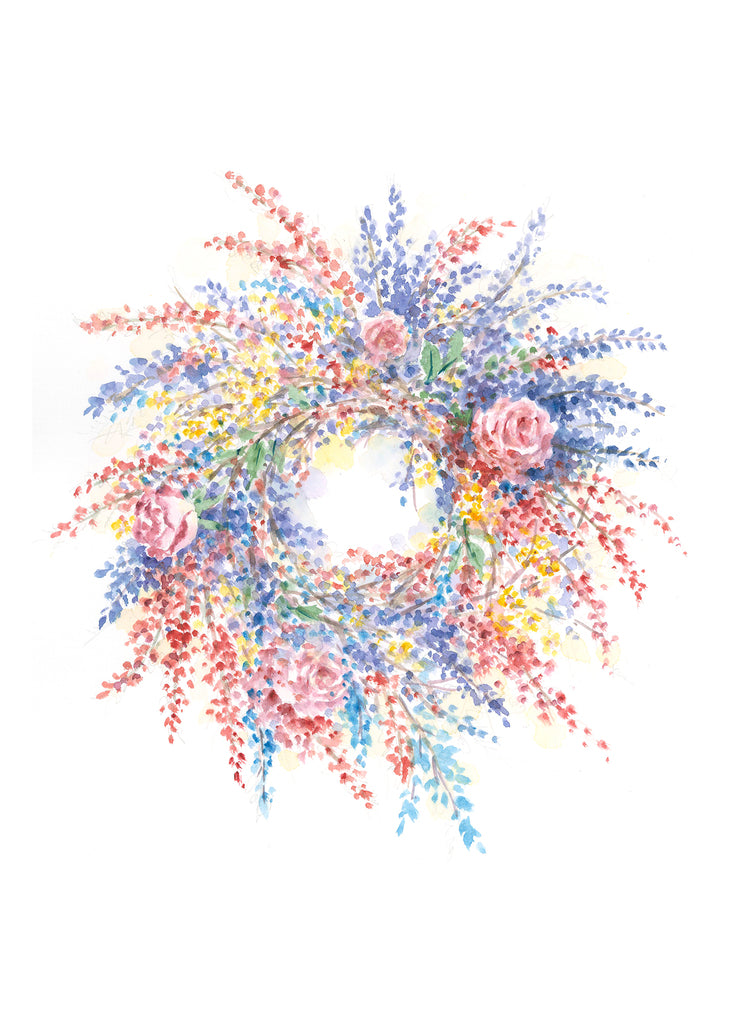 Carols Rose Garden Colorful Floral Wreath Flower Watercolor Greeting Card 5x7 H-FLW007 | 1785 | 260054