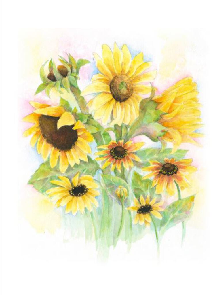 Carols Rose Garden Sunflower Field Yellow Flower Watercolor Greeting Card 5x7 H-SUN018 | 1834 | 260103