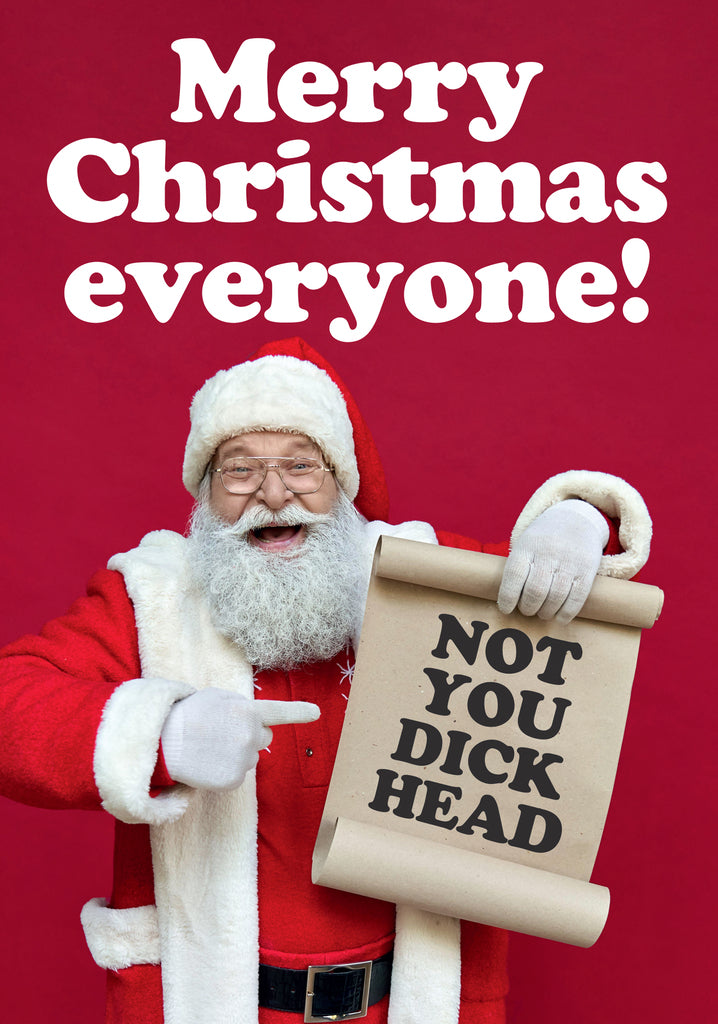 Dean Morris Merry Christmas Everyone Not You Dick Head Santa Claus Laughing Funny Greeting Card 5x7 DMX312 | 259941
