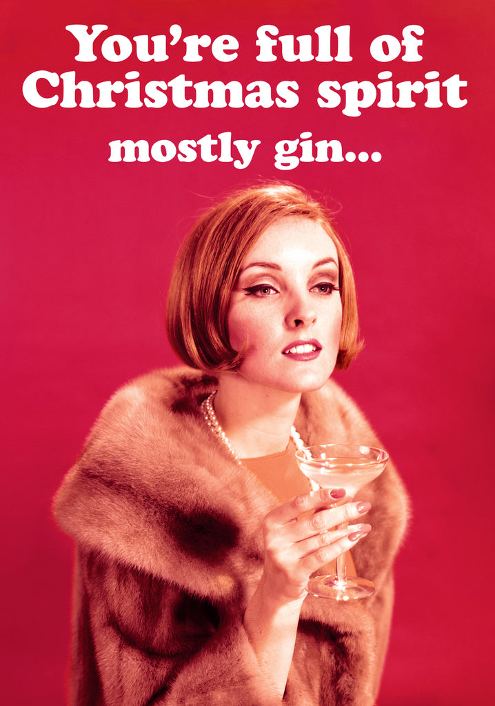 Dean Morris You're Full Of Spirit Mostly Gin Woman Holding Cocktail Glass Funny Christmas Greeting Card 5x7 DMX317 | 259947