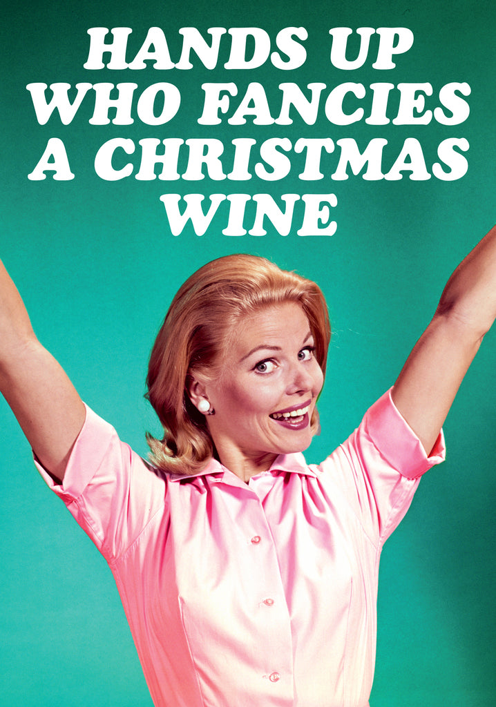 Dean Morris Hands Up Who Fancies A Christmas Wine Funny Greeting Card 5x7 DMX318 | 259949