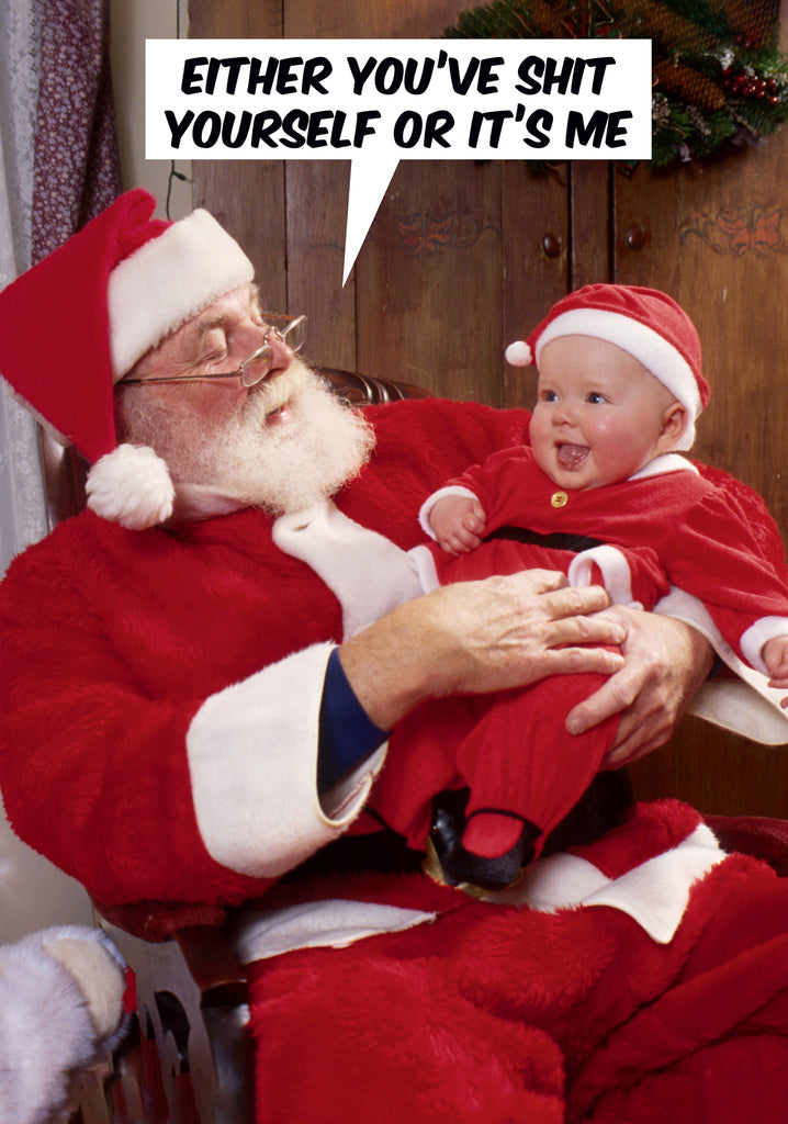 Dean Morris Shit Yourself Or It's Me Santa Claus Baby Santa Funny Christmas Greeting Card 5x7 DMX321 | 259952