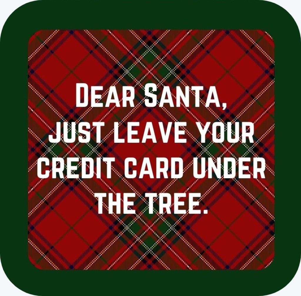 Dear Santa Just Leave Your Credit Card Under The Tree Holiday Premium Drink Coaster Resin With Cork Backing 265557 SSC2045 265557