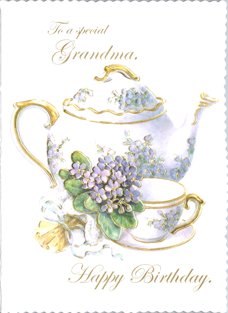 Purple hydrangeas and tea themed Grandma embossed die cut birthday card from Carol Wilson Fine Arts. Inside: You are special! Happy Birthday Grandma Retail $4.25 | CRG6024 | 255782