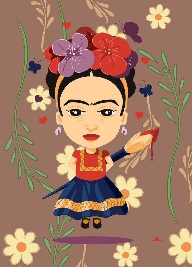 Frida Kahlo Doll Premium Felt Paper Blank Greeting Card 5x7 | 1004 | 260109