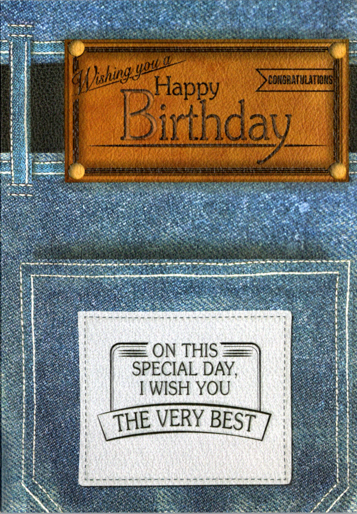 Jean pocket- Kids birthday card. Retail $3.49. Inside: Hoping today is a perfect fit! | 7062 | 255463