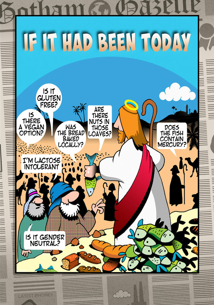 Mark Lynch Food Intolerance Gluten Lactose Jesus Loaves Fishes Funny Birthday Greeting Card 5x7 | 1145 | 259311