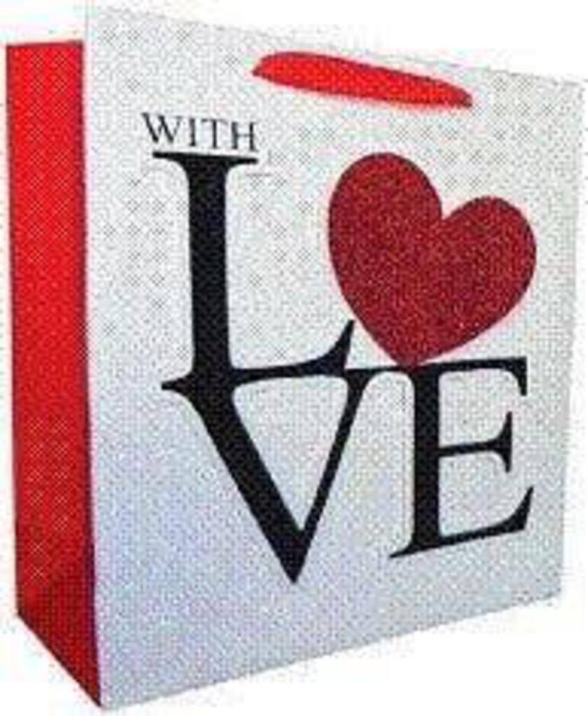 With Love Heart Logo White Red Medium Premium Paper Gift Bag With Handle | 7390 | 257401