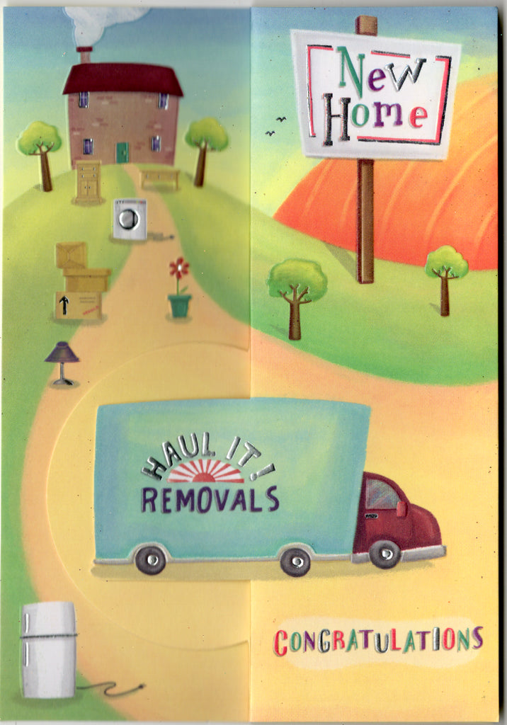 Moving truck- New home greeting card. Retail $3.99. Inside: Hope you'll be very happy! | 5155 | 255509